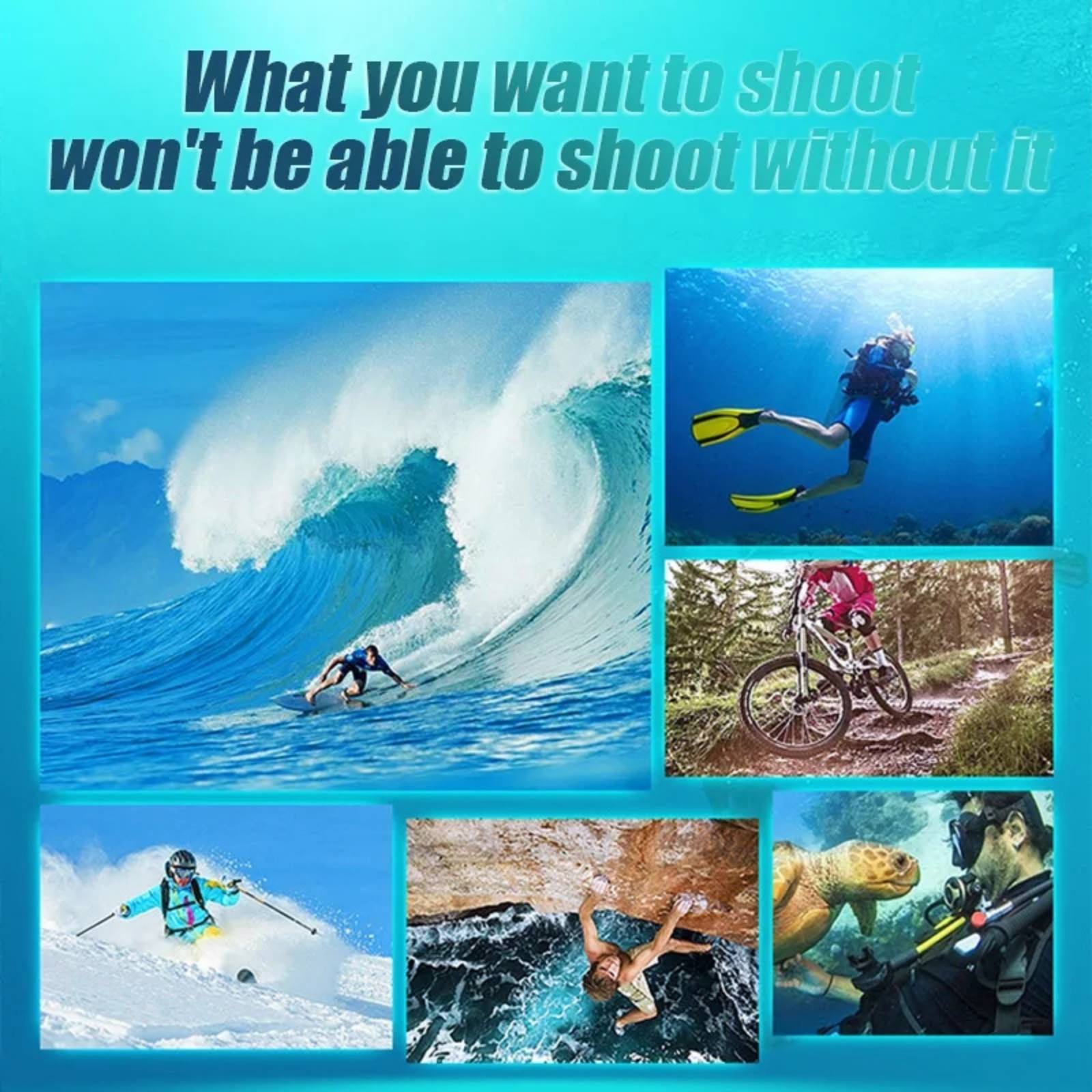 Dolazi s vodootpornim kućištem do 30 m, idealno za ronjenje i snimanje pod vodom. U paketu su i univerzalni nosači – za kacigu, bicikl, automobil ili ruke. Sve što trebate za ekstremne avanture je spakirano.