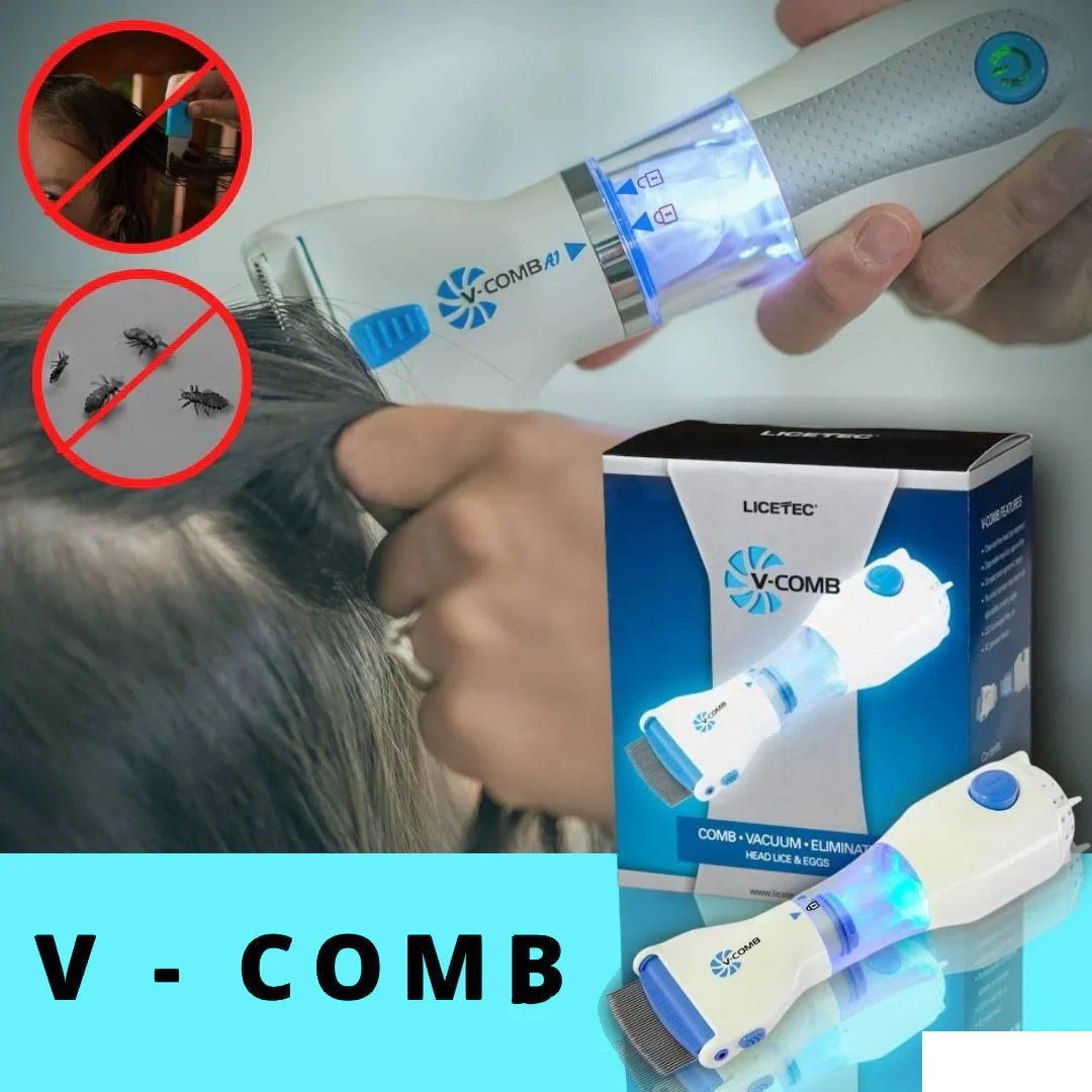 V-comb je tehnološki najnapredniji prirodni češalj za vaši na tržištu, odobren od strane FDA uprave za hranu i lijekove. Tretira kosu od vašaka bez upotrijebe hemikalija i pesticida, pružajući sigurnost za cijelu porodicu, istovremeno rješavajući problem vaši i gnjida usisavanjem vakuumom. Rezultati su vidljivi tokom tretmana, dok se vaši i gnjide prikupljaju u osvijetljenom jednokratnom filteru za hvatanje, omogućavajući higijensko zbrinjavanje otpada.