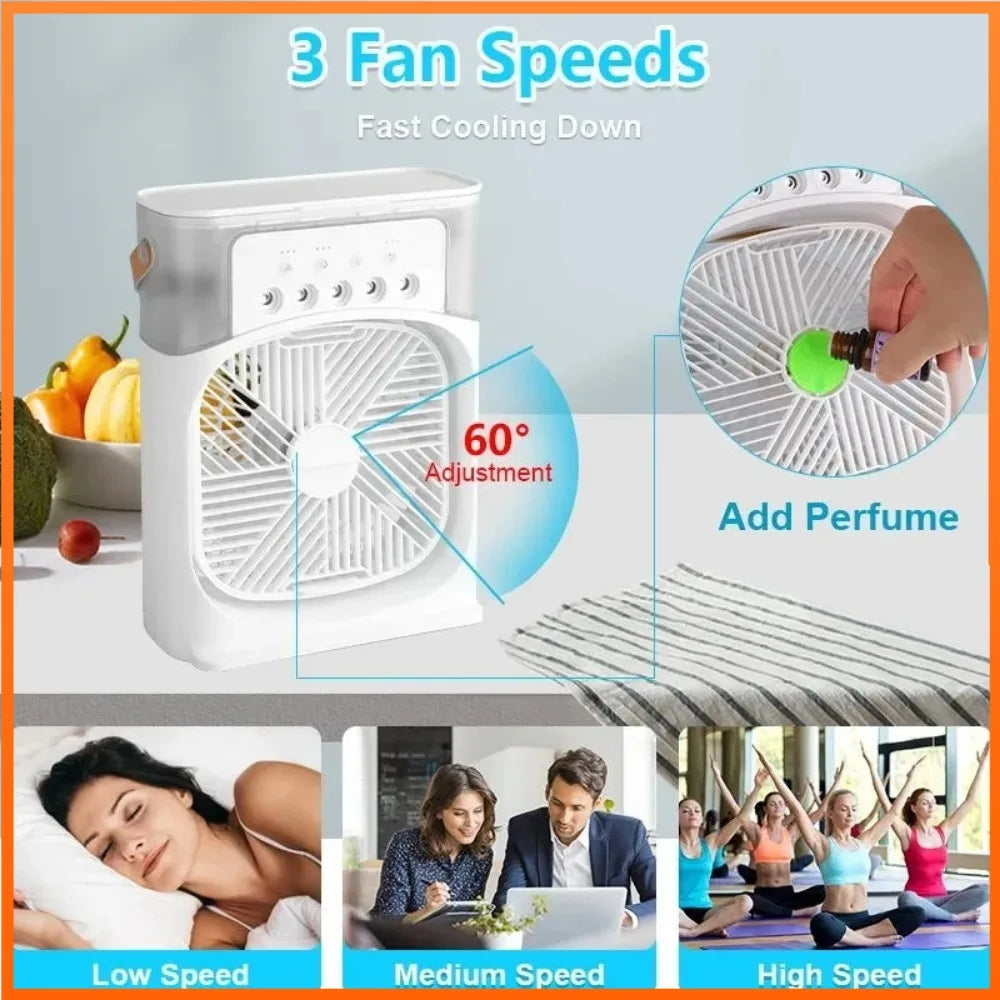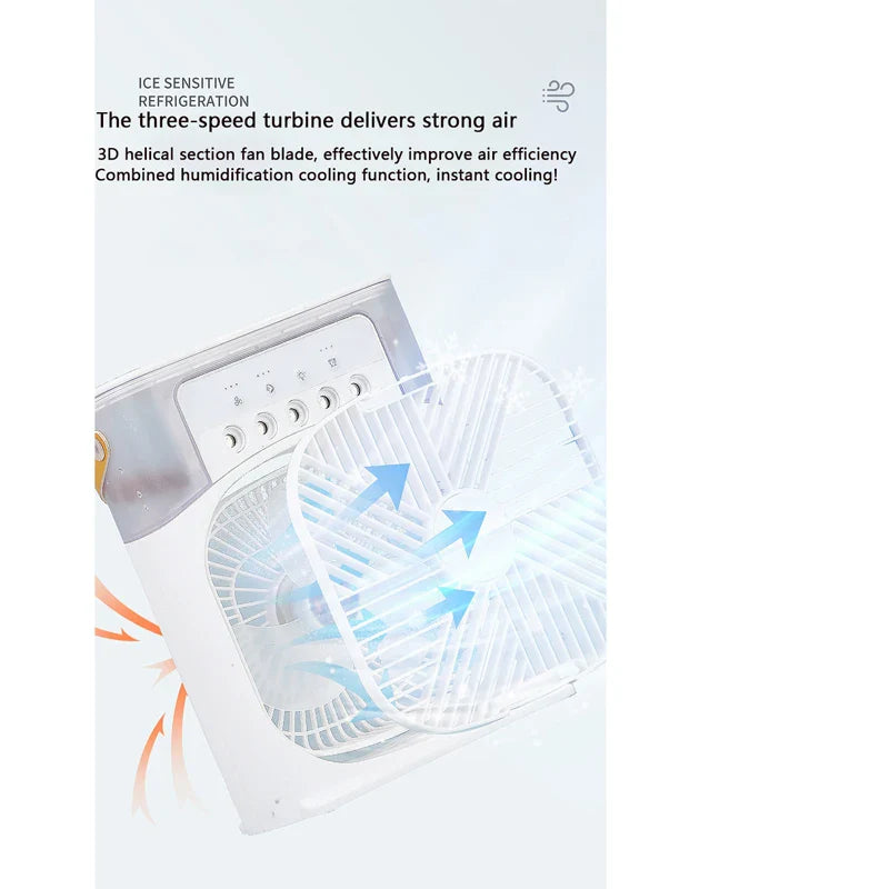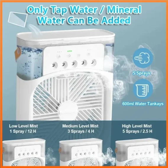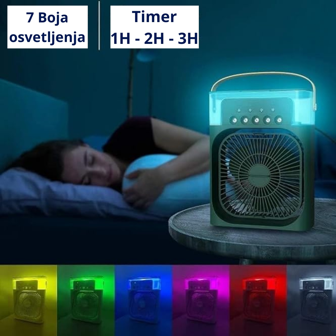 Ovaj višenamjenski uređaj koji kombinuje funkcije ventilatora, klima uređaja i ovlaživača vazduha. Idealan je za korišćenje tokom vrelih ljetnih dana, kao i za vlaženje vazduha u jesen i zimu. Ovaj kompaktni uređaj je savršen za kuću, kancelariju, piknike i kampovanje.