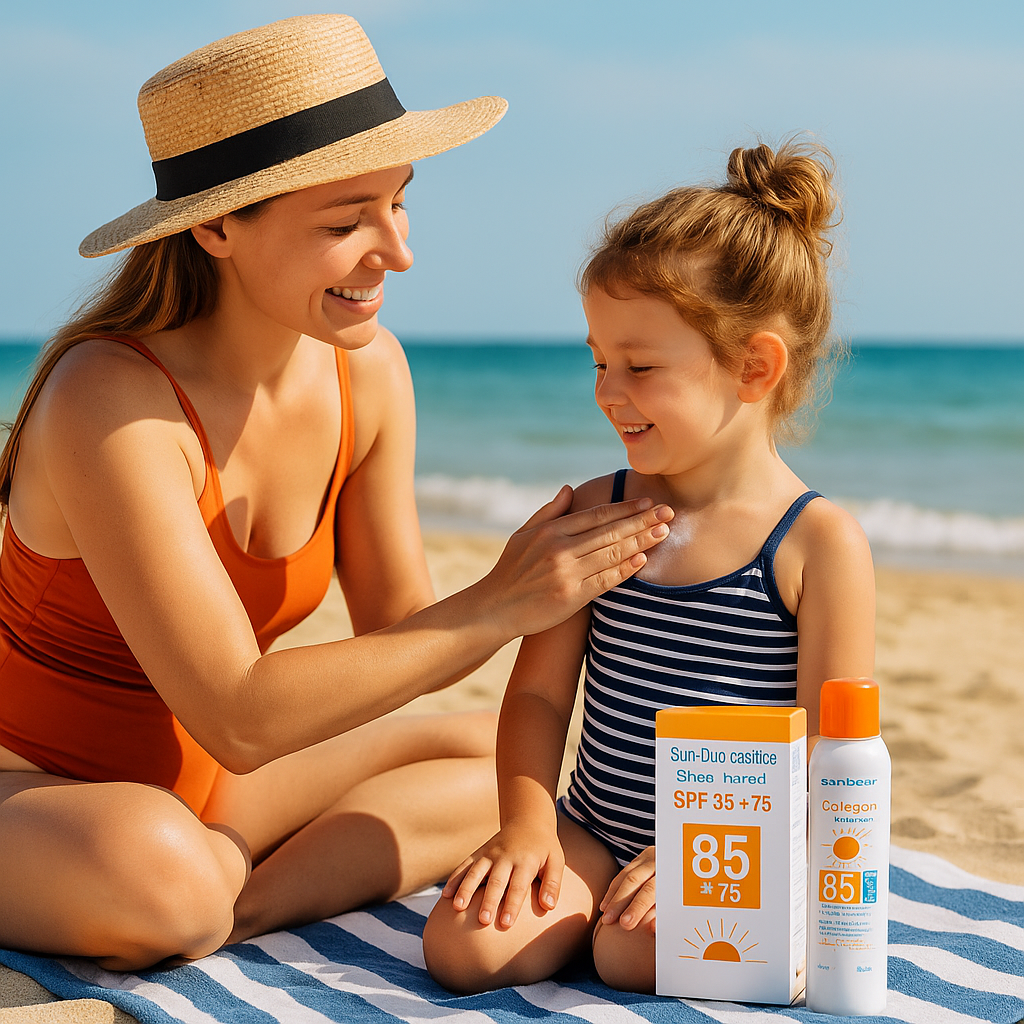 Ovaj set uključuje visokokvalitetni sprej i kremu za lice i tijelo sa izuzetno jakim SPF faktorima – 85 i 75, idealnim za plažu, planinu ili svakodnevnu upotrebu.